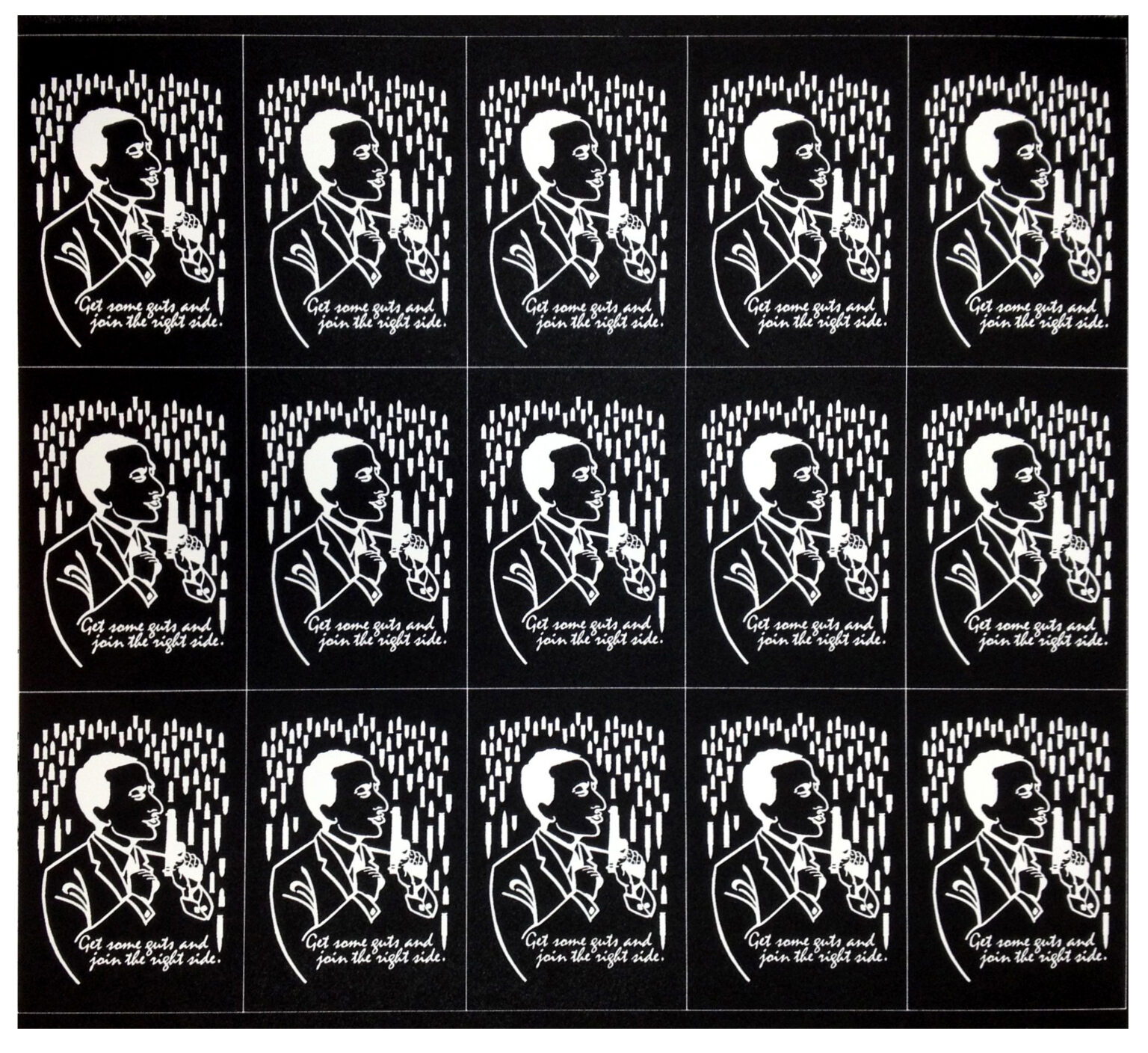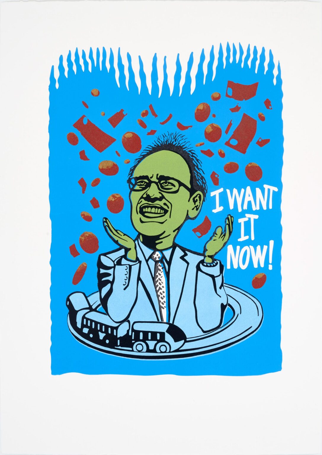 The print series sent to the IMPACT9 Exhibition focused on reporting from national and global media, to recontextualise words and images with a hybrid print production method that includes letterpress, computer generated vector images, and laser cut printing plates. The themes for the posters in the exhibition focussed on political figures of the time. One poster theme highlighted the apparent eagerness of former Prime Minister of New Zealand, John Key, in his support of the sending of troops to the Middle East (reported in The Guardian newspaper, 2015). Another poster critiqued the then mayor of Auckland, Len Brown, and his 2015 mayoral campaign platform to construct an underground metro service (reported in The New Zealand Herald newspaper).