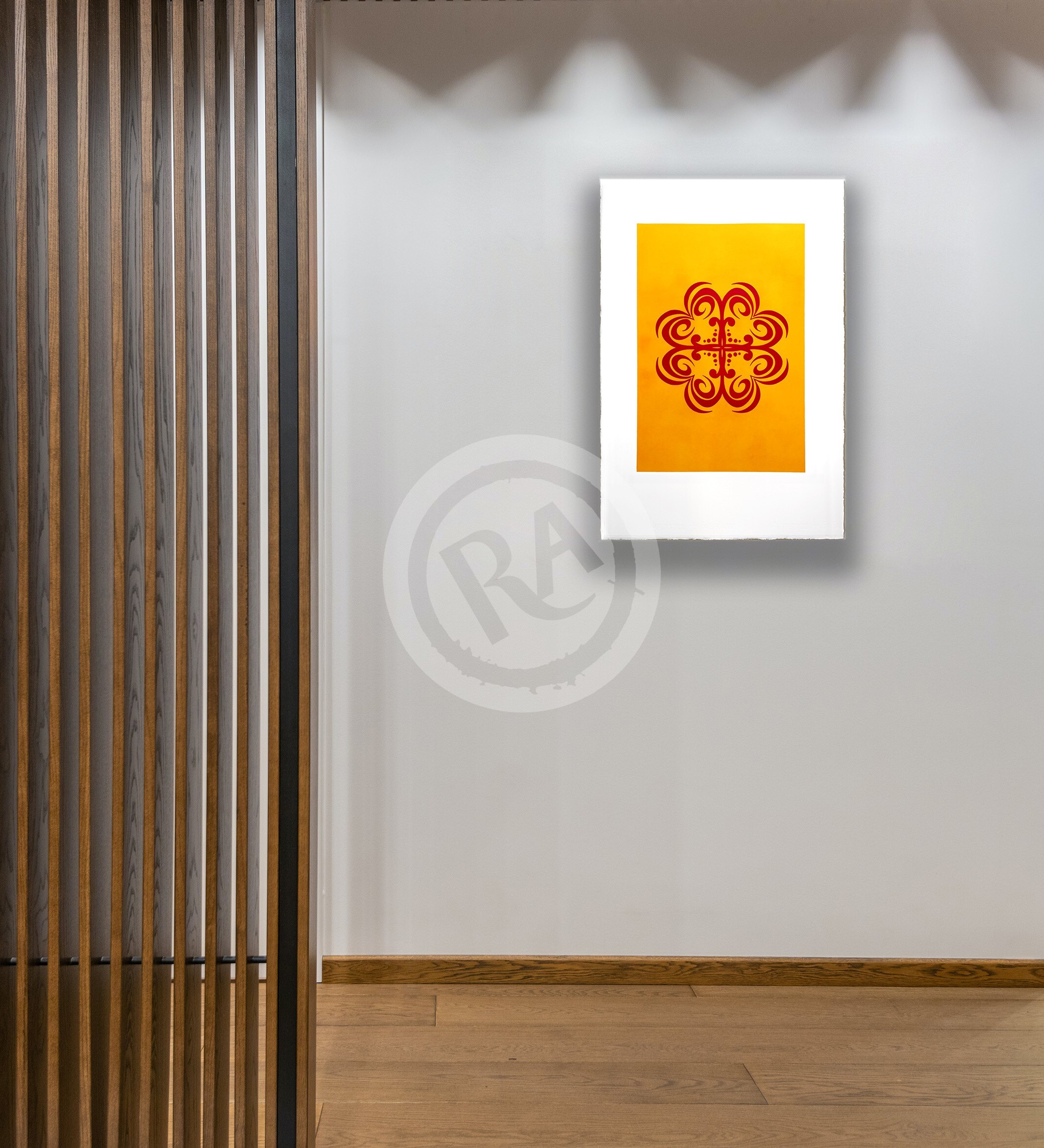 We have selected a bespoke, deep ochre-red pigment that evokes the earthy richness of traditional kōkōwai. The matte finish of the ink allows the colour to shift beautifully depending on the light in your room.