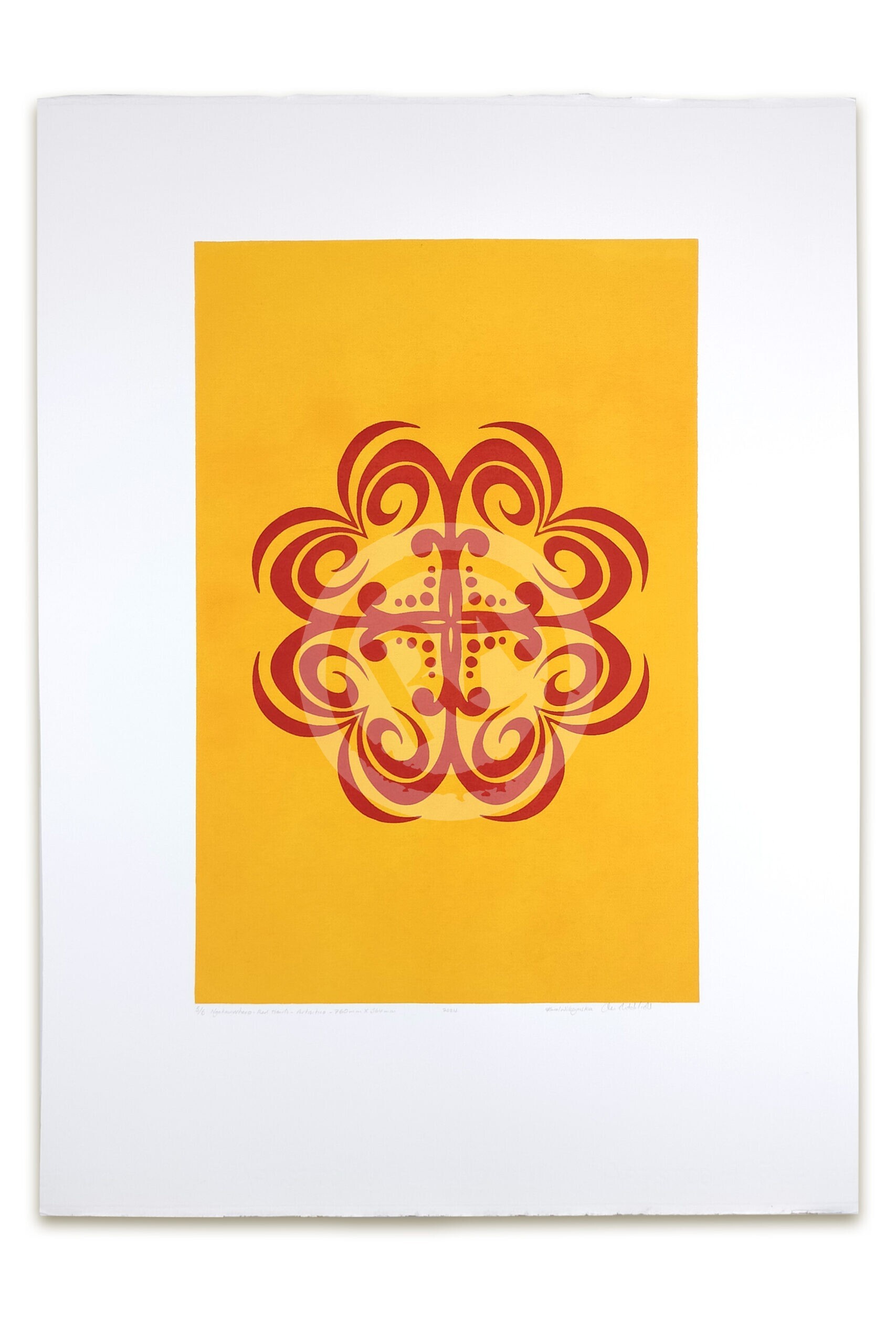 Red Heart Ngakauwhero is produced using traditional screen printing techniques, a process that mirrors the intentionality of Māori carving. Each layer of ink is hand-pulled, resulting in a depth of colour and a tactile finish that digital printing simply cannot replicate.