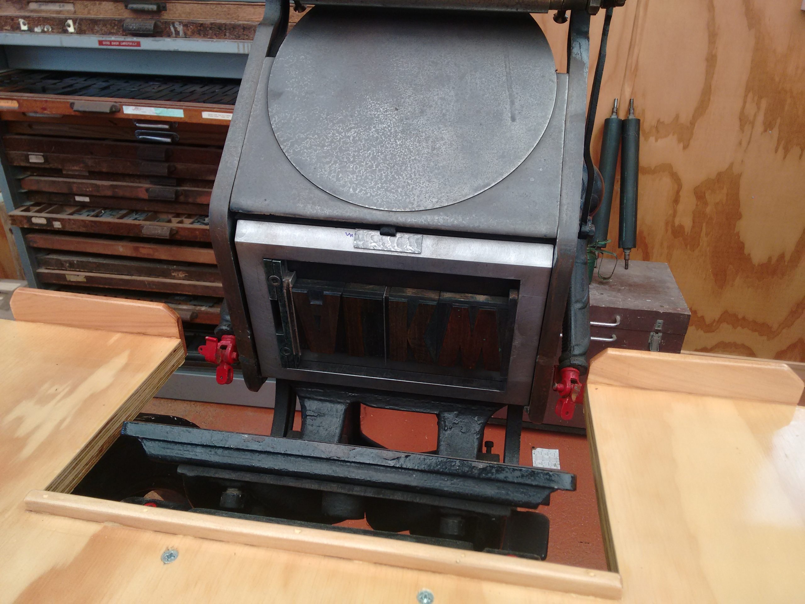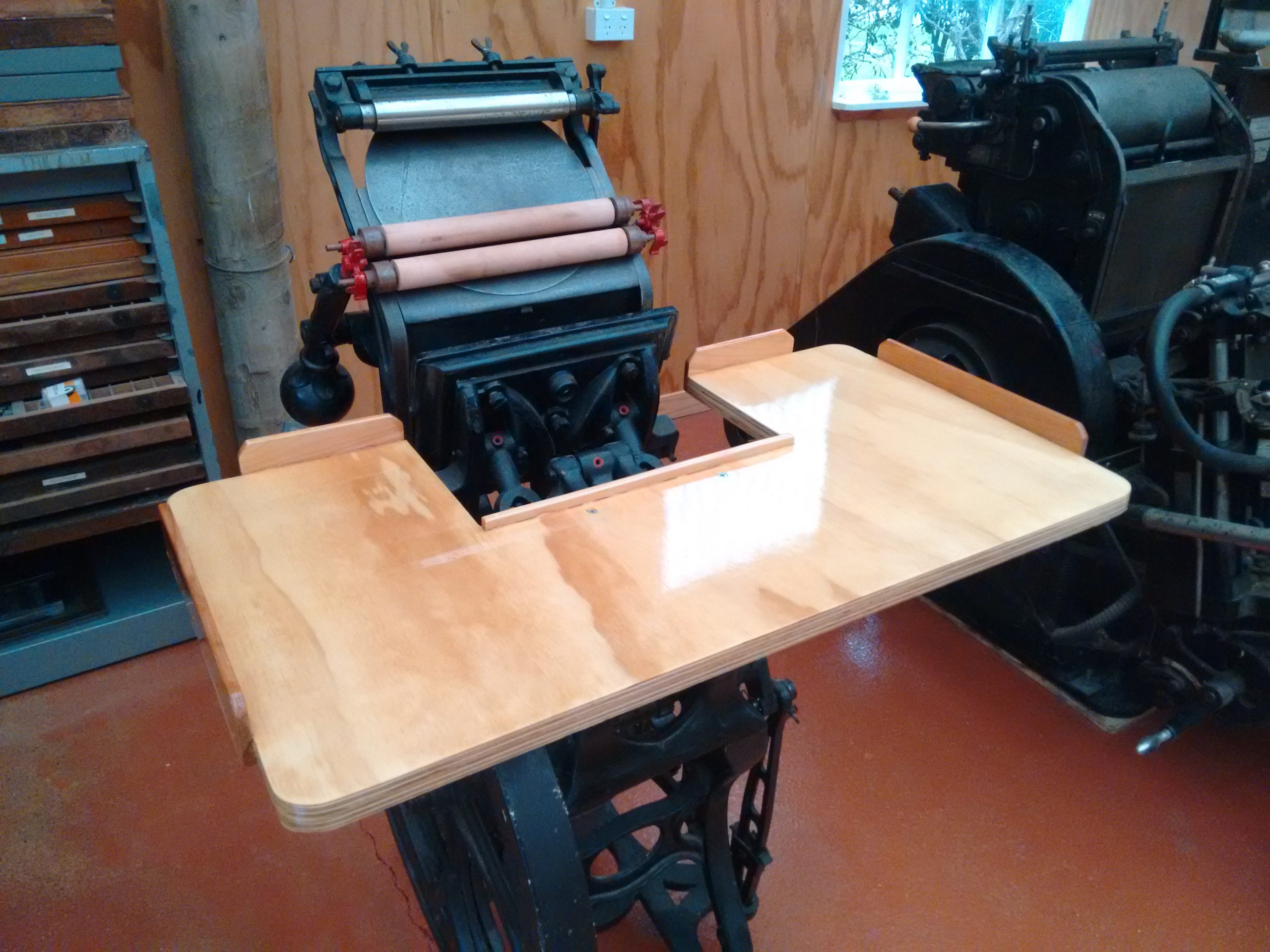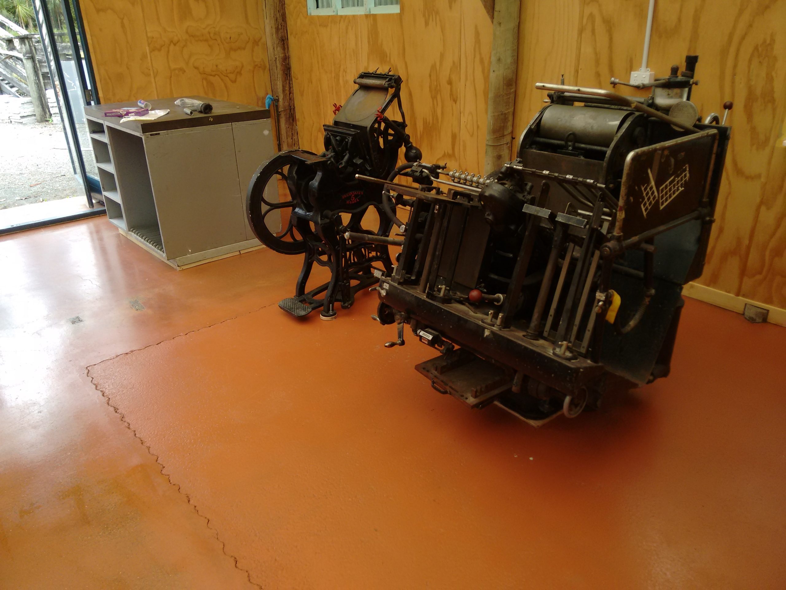 The Squintani Model 5 is as much a type of press (the Model range of printing presses) as it is a unique machine. Probably made by Peter Hooker Ltd in Walthamstow in London in the 1890’s, the Model press we have has had a difficult life. It was purchased from an ad on the TradeMe auction site and partially disassembled at the time. We were assured it was complete and had been restored to working order in the UK prior to its then owners emigrating to New Zealand. … It was neither.