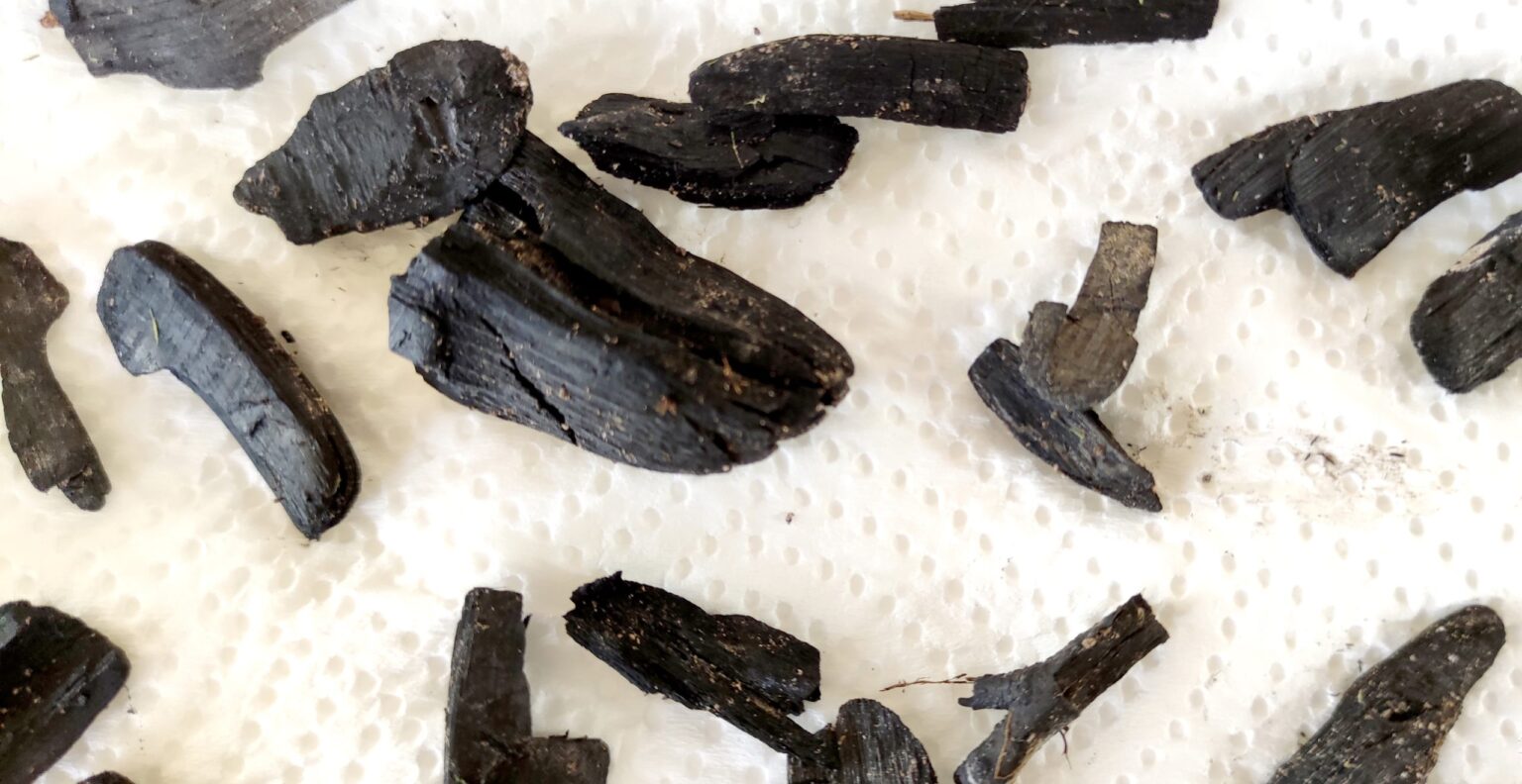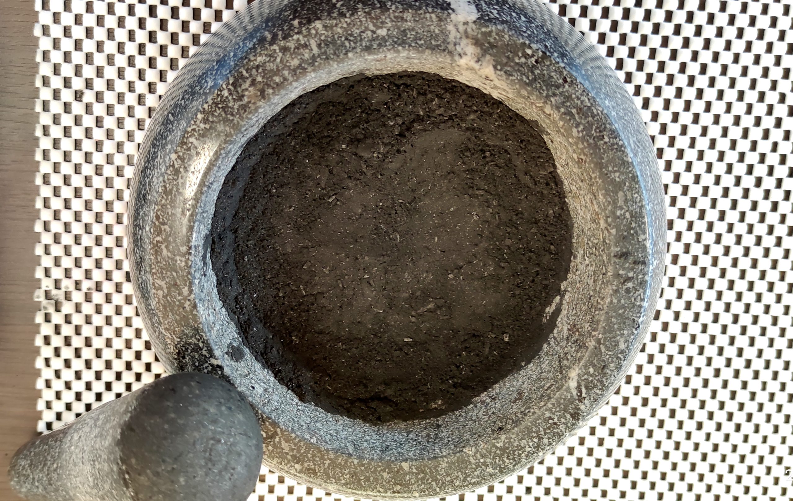 The carbon of the Tasmanian Blackwood (Figure 4a) was pounded and ground to a fine powder (Figure 4b) and mixed with the same carriers as the Pohutukawa stamens to produce inks of varying densities and drying performance (Figure 4c).