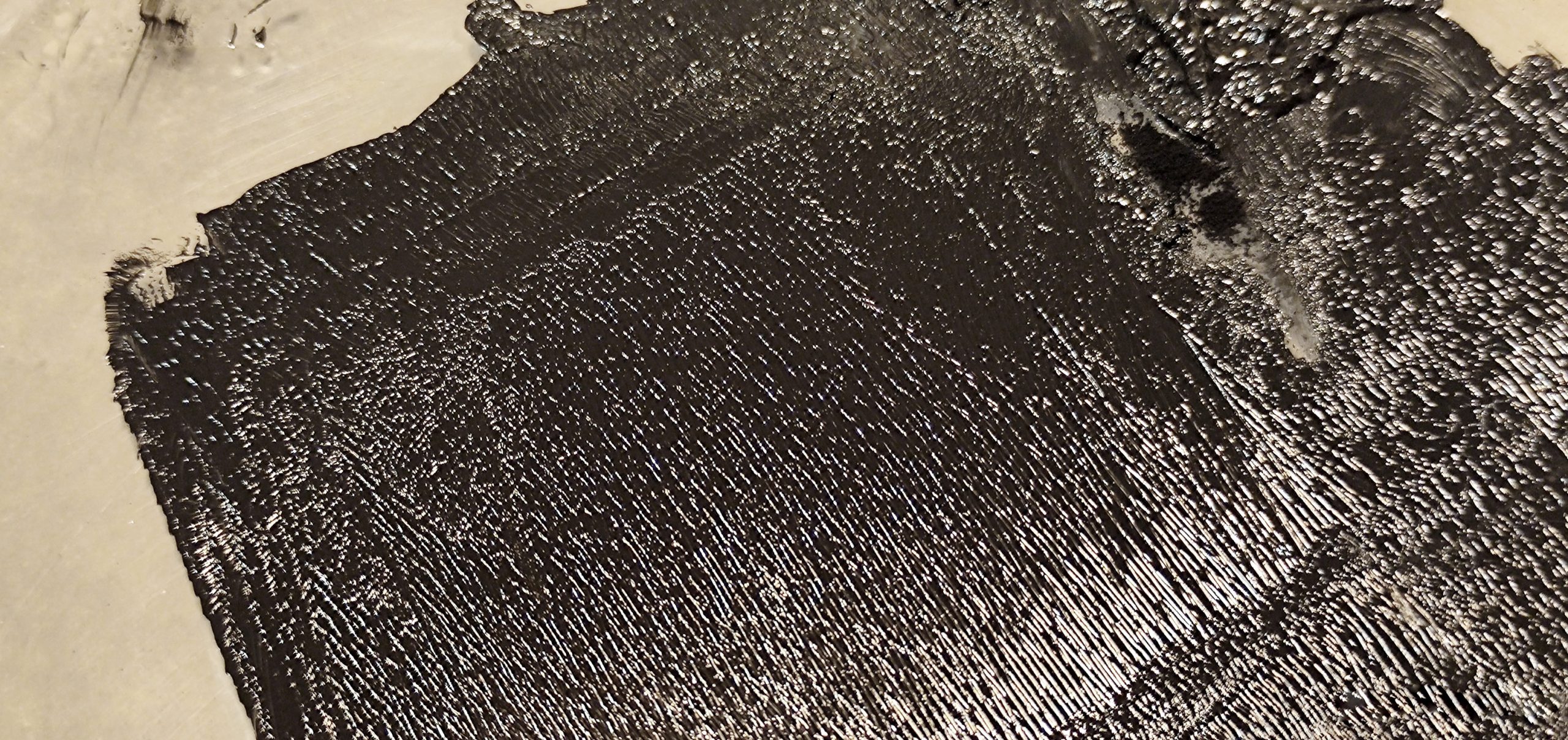 The inks used for printing were prepared using 50:50 clay powder and boiled linseed oil. Unheated Kauri gum resin was added to the ink as binding agent. To assist in drying a drop of Cobalt dryer solution was added just prior to rolling out. While mixing, the consistency and tack of the ink was tested until the desired level was reached. If too wet and the ink takes several weeks to dry, too dry and the print cracks.